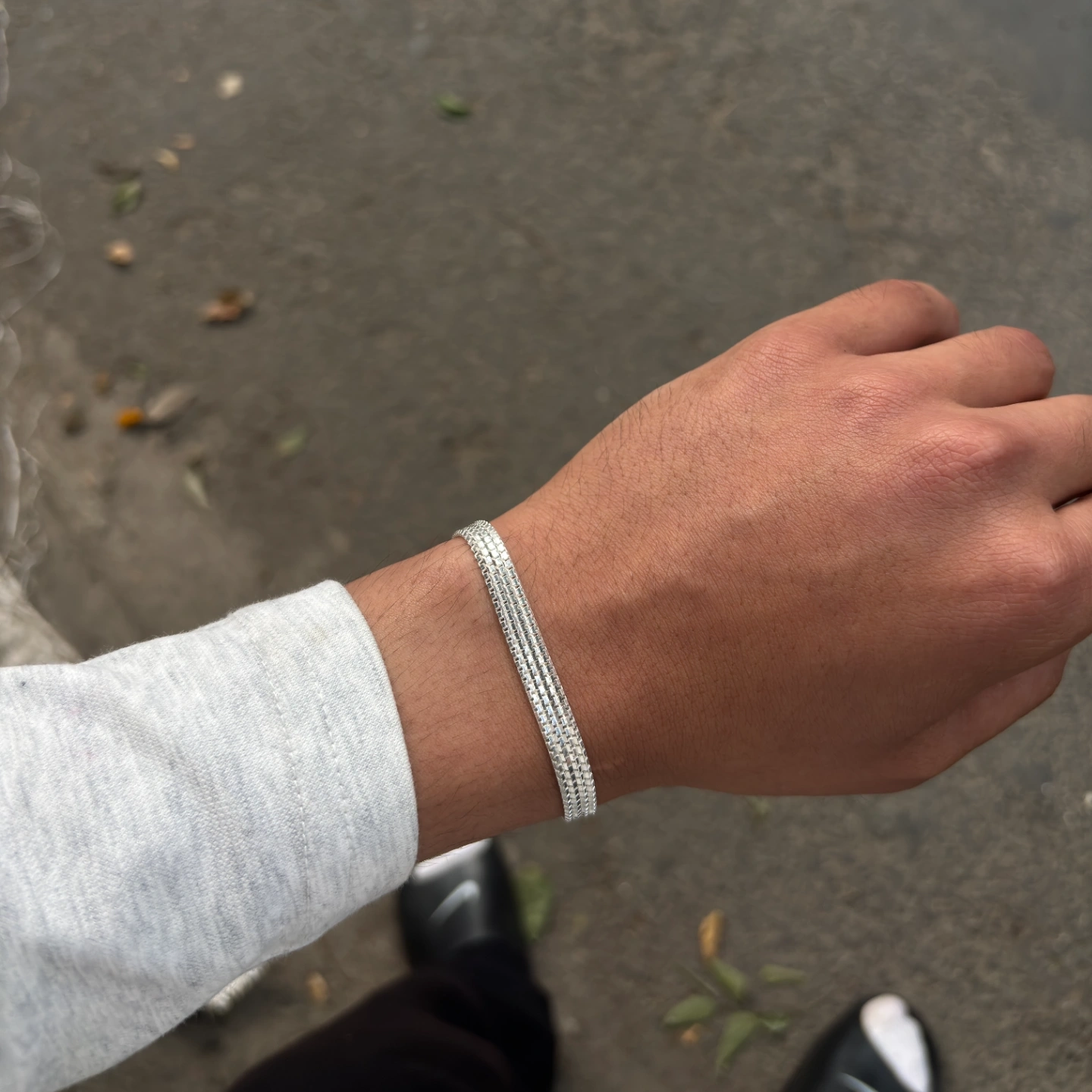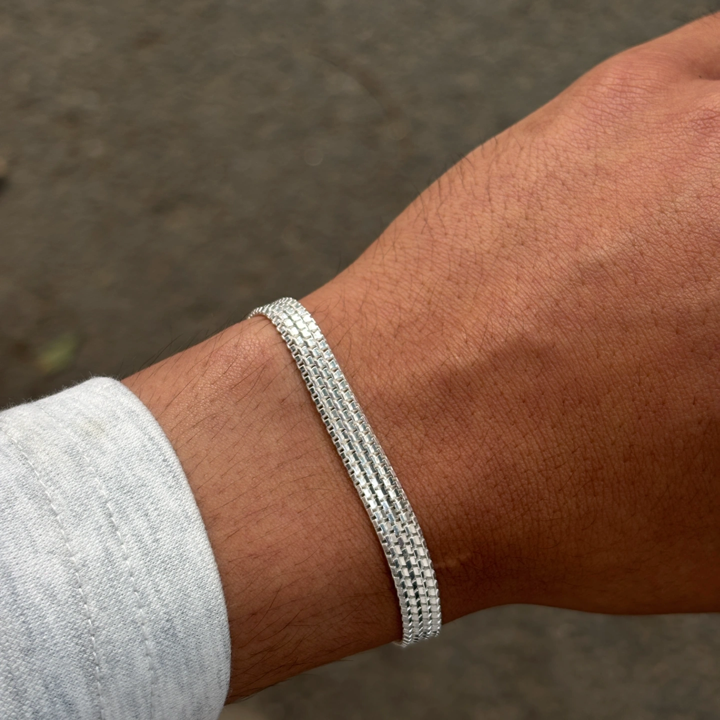 Crafted with a finely box design pattern, it offers a subtle texture that catches the light without being overpowering. The smooth, flexible construction ensures a comfortable fit on the wrist, making it ideal for all-day wear.