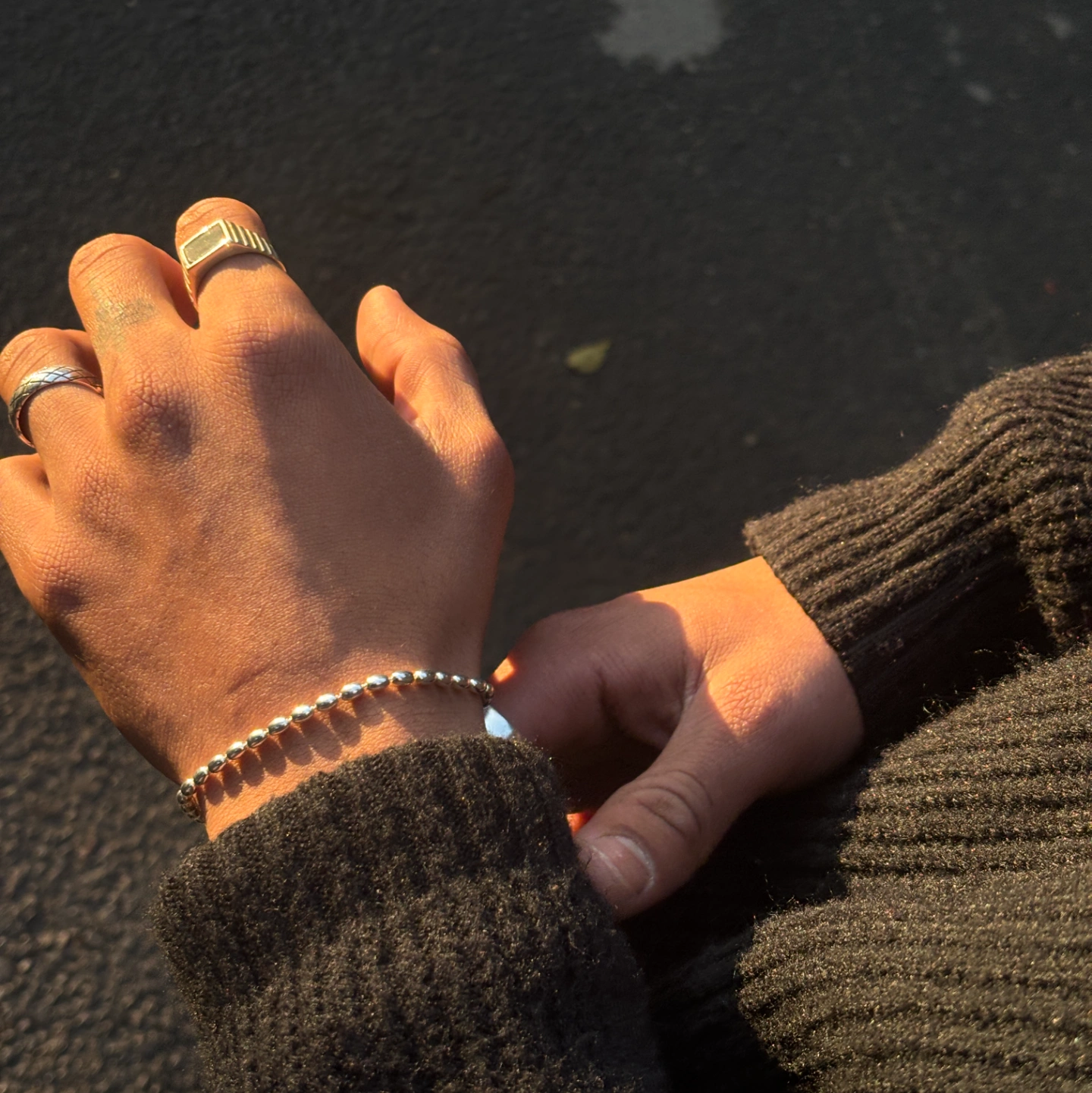 The Droppy Bracelet, a fluid piece designed to catch the light from every angle. Masterfully crafted from premium 925 Pure Silver, this bracelet features a continuous strand of oval, mirror-polished beads that mimic the organic shape of falling water.