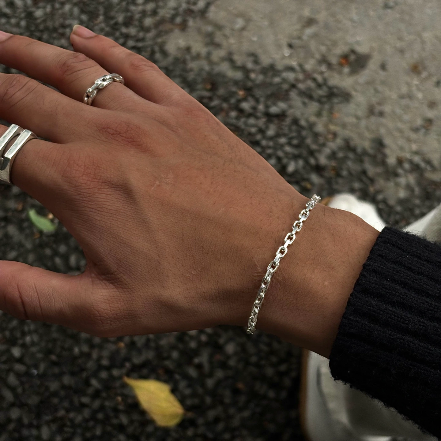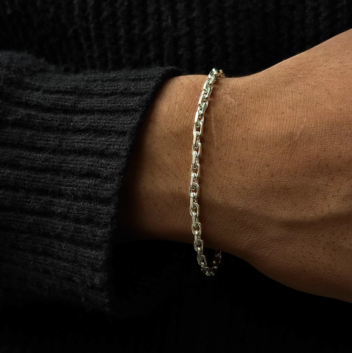 Complete your winter wardrobe with the Premium Silver Link Bracelet. Handcrafted with pure silver, its sleek link design adds a touch of sophistication to cozy sweaters and tailored coats. Perfect for every occasion this season!