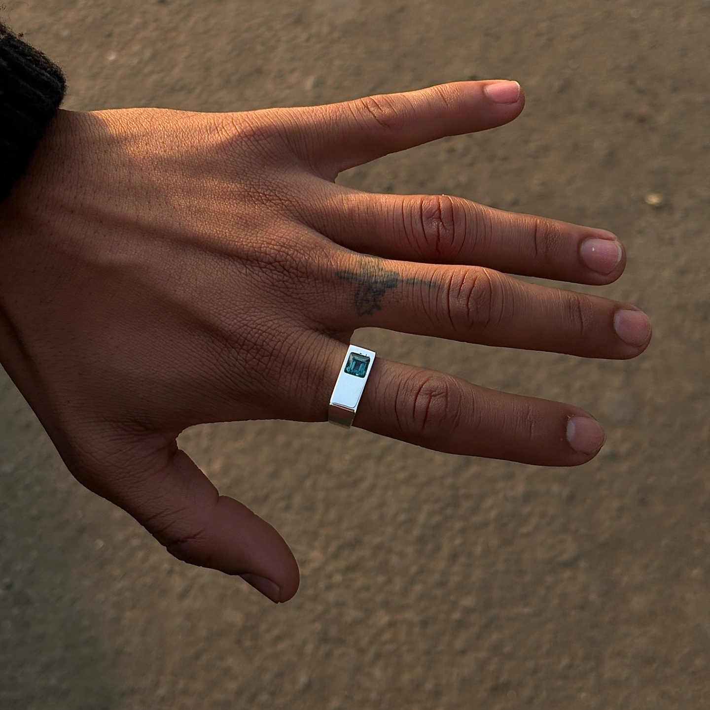 The Prime Cut Signet Ring, a masterpiece of geometric precision and modern luxury. Forged from high-grade 925 Pure Silver, this ring features a prominent, rectangular-cut gemstone that commands attention with its deep, saturated color and clean, architectural lines. The "Prime Cut" design focuses on the perfect symmetry and proportion of the stone, ensuring it captures and reflects light with every movement.